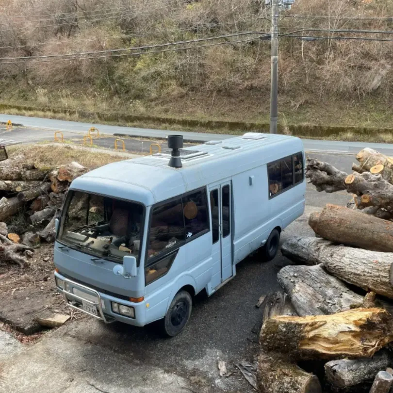 バスをそのままキャンピング仕様にして、そこに導入しました。